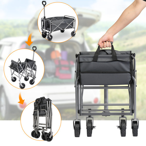 29x18x33in Grey Cloth Silver Frame 600D Oxford Cloth Steel Frame Small Wheels Flat Fold Garden Folding Cart 220lbs1